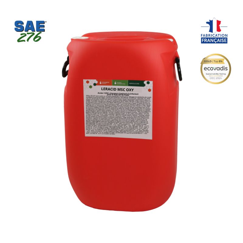Développé par Stockmeier France Hygiène et Désinfection, LERACID MSC OXY est un détergent acide non moussant combinant détartrage, nettoyage et désinfection en une seule opération. Il est spécifiquement formulé pour les machines à traire, les tanks à lait et l’ensemble des circuits de production laitière.